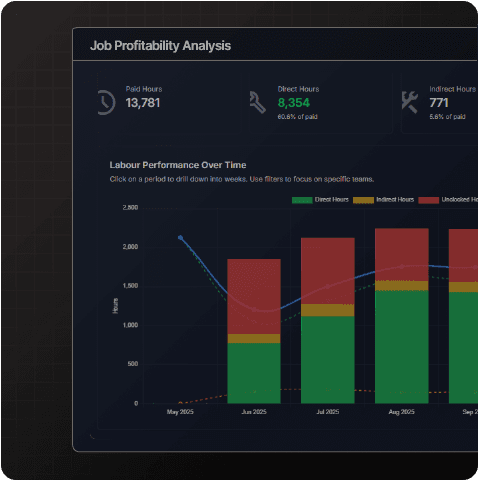 Live visibility of job progress, labour, and cost, captured at the point of work so decisions are based on reality, not hindsight.